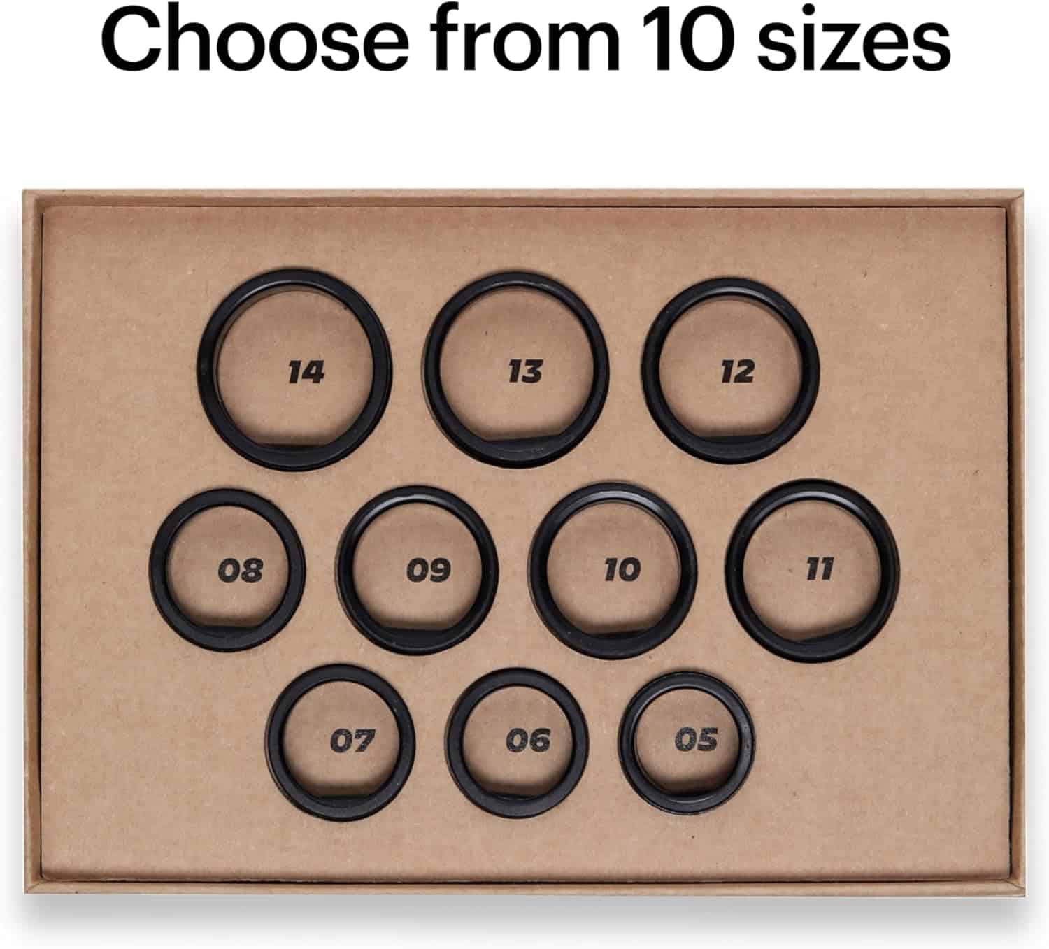 Ultrahuman Ring AIR izmēri atšķiras no standarta gredzenu izmēriem. Lai precīzi noteiktu savu izmēru, vispirms iegādājieties izmēra noteikšanas komplektu. Ring AIR ir pieejams 10 izmēros (5–14).